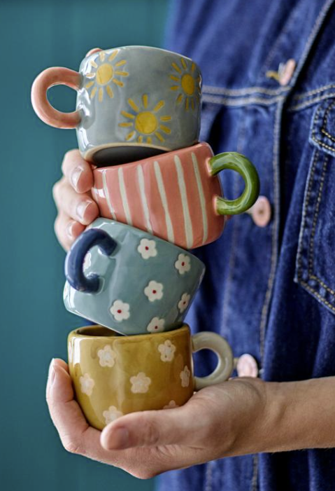 La tasse Nini de Bloomingville est une tasse aux formes douces, dotée d’une anse ludique. Elle est peinte à la main et décorée de motifs floraux délicats avec un léger effet en creux, qui apporte une texture subtile à son ton chaleureux. Une touche raffinée pour le quotidien. De légères variations de motif et d’intensité des couleurs peuvent apparaître, rendant chaque tasse unique.